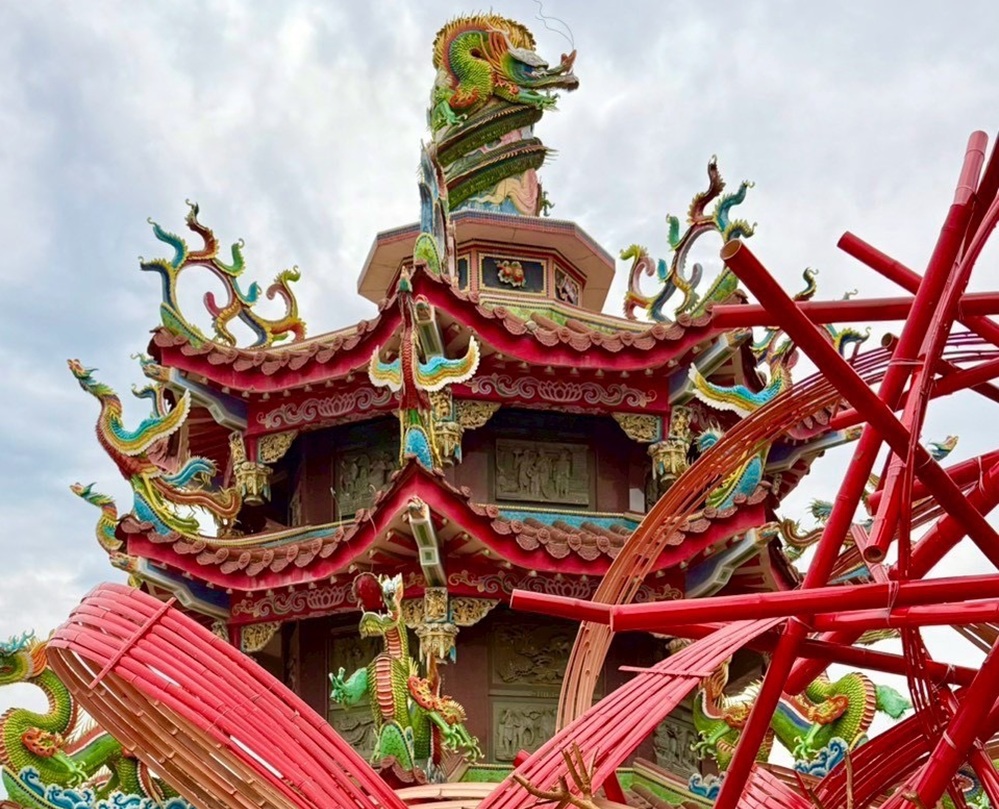 中寮城隍廟前最具象徵意義的百年老樹,在去年丹娜絲颱風重創倒下,重寮社區說明《光之境》以「重建百年老樹」為創作精神,象徵中寮城隍廟象徵信仰力量延續與地方文化再生。此次作品由藝術創作者盧大衛(David Lu)共同參與,透過層層串聯的光脈結構,呈現城隍爺長年守護地方的精神,也承載居民與遊客的祝福與願望,讓傳統信仰以當代藝術形式重新走入大眾視野。