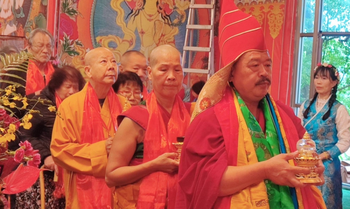 慧吉祥大活佛表示,佛教燈供象徵開啟智慧光明破除無明,寓意為個人、家庭與社會祈願平安順遂、福慧增長。 上百信眾魚貫巡線供燈供佛、燒施火供持誦唸經供養持續2小時,無比誠誦繞著天龍火舞供養青乾草、五豆、酥油、沙拉油品等,信眾弟子虔誠比次追隨上師的引導,法喜充滿。慧吉祥上師表示,「息、增、懷、誅」是藏傳佛教(密宗)的四種根本修持法門,稱為「四事業」或「四法」,旨在調伏內在煩惱、外在障礙,並增益福德與智慧,此次以「懷」法會為核心,懷(愛)代表 懷柔、慈愛,象徵運用慈悲心吸引、感化、懷柔眾生。上師引導信眾觀想紅色光或作明佛母等本尊。懷的法會殊聖,對於改善人際關係、獲得貴人相助、增進家庭和諧。