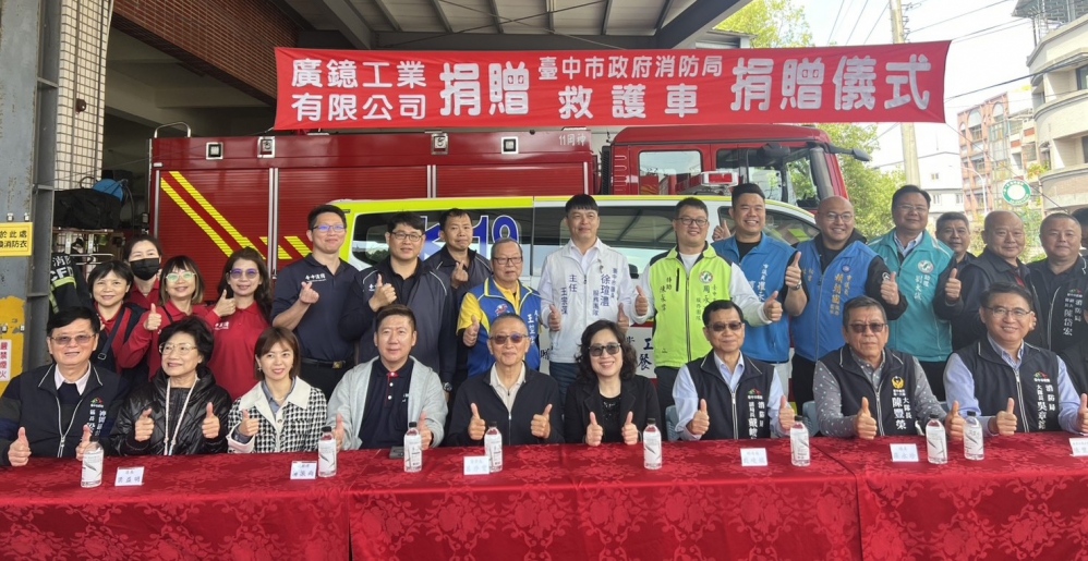 消防局表示,「政府的資源有限,但民間的力量無窮。」非常感謝廣鐿工業有限公司將寶貴的社會資源挹注於消防緊急救護工作上,這份義舉不僅是對消防局最直接、最有力的支持,更是對所有第一線同仁精神上的巨大鼓舞。這輛性能優越的救護車,將使消防人員在執行急救任務時如虎添翼,更增添一份安全感,進而強化台中市整體的緊急救護網絡與急難救護能力,對保障市民的生命安全,有著極為顯著的助益。消防局期盼,廣鐿工業的善行能發揮拋磚引玉之效,激勵更多企業與市民共同關心並支持地方的緊急救護工作,共築更安穩、更幸福的城市。