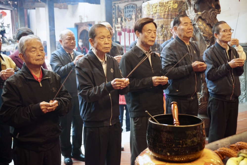 儘管天氣有些陰暗,氣溫下降,絡繹不絕善男信女依舊到萬和宮,祈求媽祖保佑閤家平安,香火繚繞;前後殿的供桌都擺滿信眾供奉的素果、素麵等供品,相當壯觀。