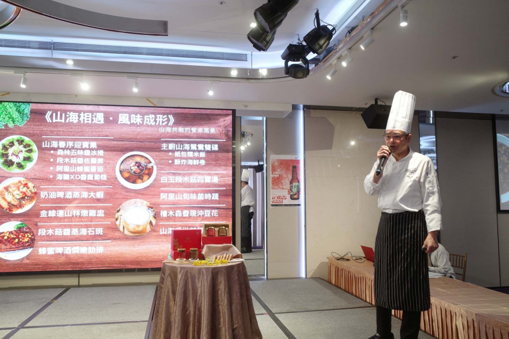 【記者張文一嘉義報導】新悦花園酒店率先將阿里山林下經濟食材融入料理研發,運用阿里山段木菇搭配嘉義布袋霜鹽,研發出香氣濃郁的「段木菇醬禮盒」,讓林下良品食材透過料理與商品形式走進更多人的餐桌。