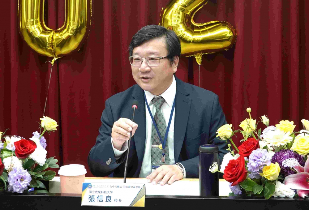 虎科大校長張信良表示,虎科大自111年起即與台中精機展結盟合作,並透過多軸機技能競賽,以賽代訓培養學生實務能力。