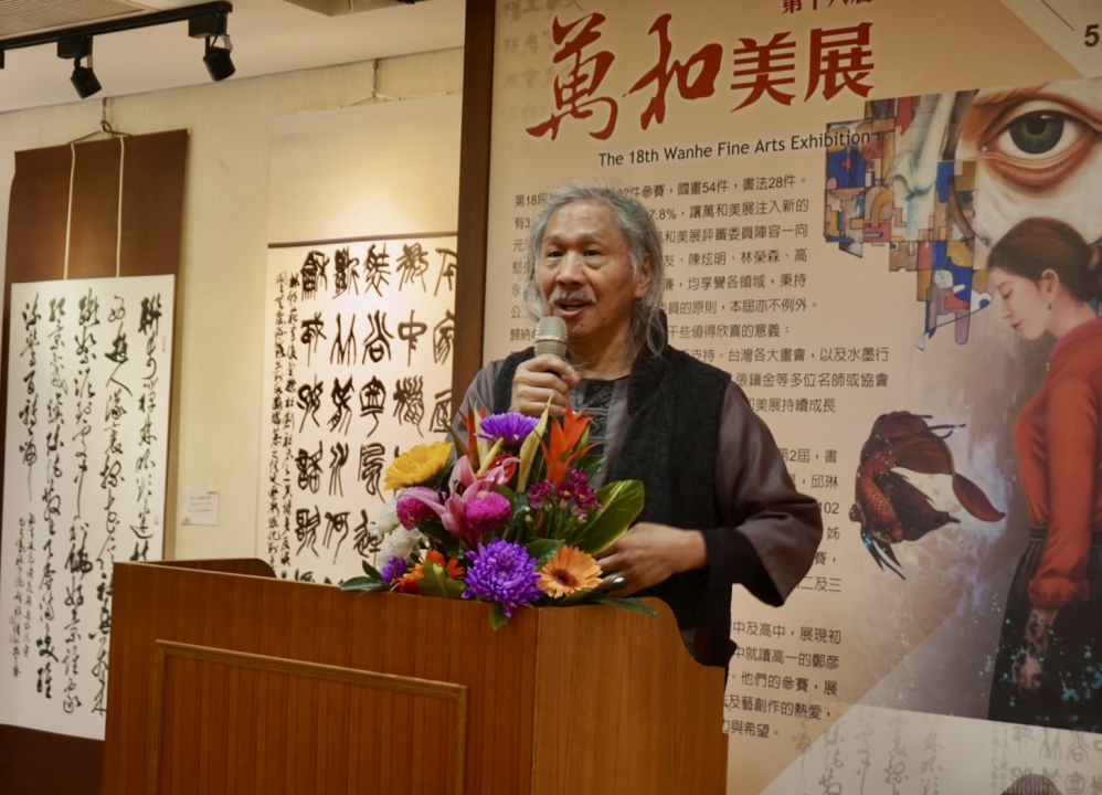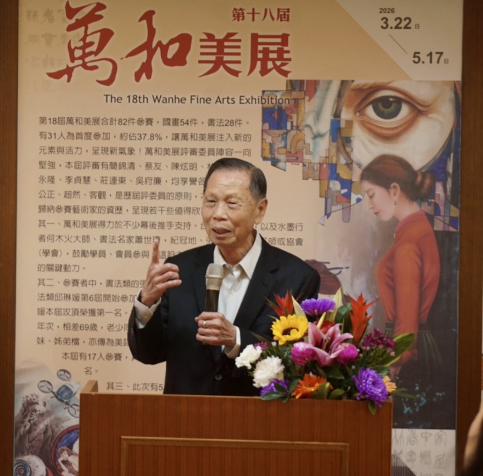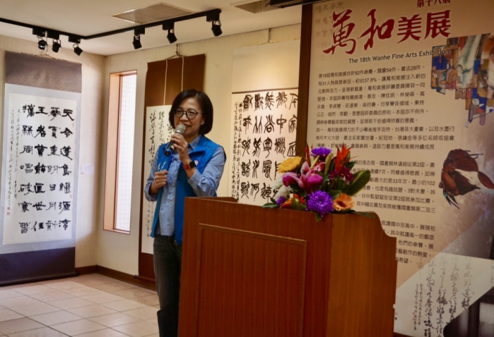 市府文化局專門委員潘美君說,萬和美展邁入第18屆很不簡單,因為籌辦過程很辛苦。她指出,這一屆參賽人年齡相差69歲,可以說不分年齡,老少同一平台角逐,很不容易;萬和美展有神明慈悲、信眾善念,尤其可貴。