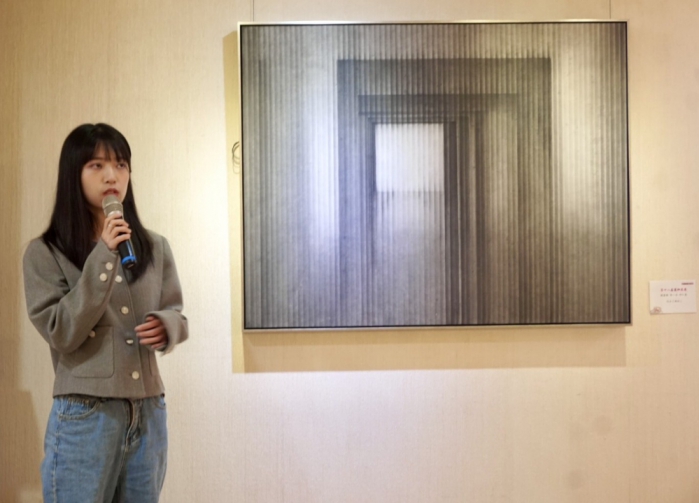 她指出,得獎的作品「廊柱」,是對「玻璃後方的世界」的一種想像與凝視。對她而言,所有經過時間沉澱的事物,都不再是清晰具象的存在,而是在記憶中被模糊、被抹去、被重新編織的片段。因此,將自己在空間中所感受到的光線、結構,轉化為隔著玻璃觀看的景象。