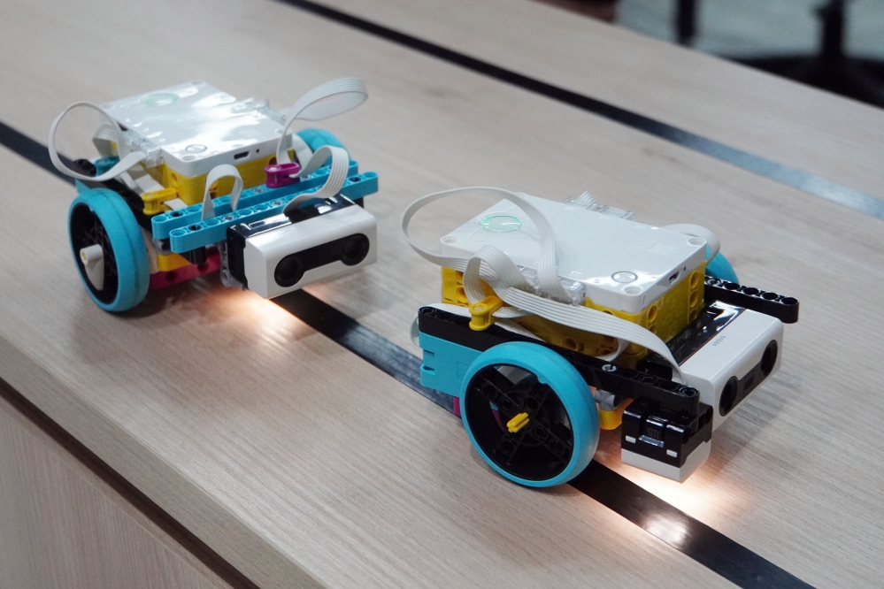 開設「智慧機器設計與程式入門」課程的萬順華老師指出,課程針對無程式設計背景學生規劃,目標在建立智慧機器與機電整合系統基礎概念,培養學生動手實作和程式設計能力,以LEGO SPIKE Prime為教具,採專題導向設計,內容涵蓋自動循跡、智慧搬運和工業自動化等應用案例,讓學生將課堂知識轉化為實際可運作的智慧機器作品,透過專題實作和成果競賽,培養問題分析、創意思考、跨域整合和團隊合作能力。