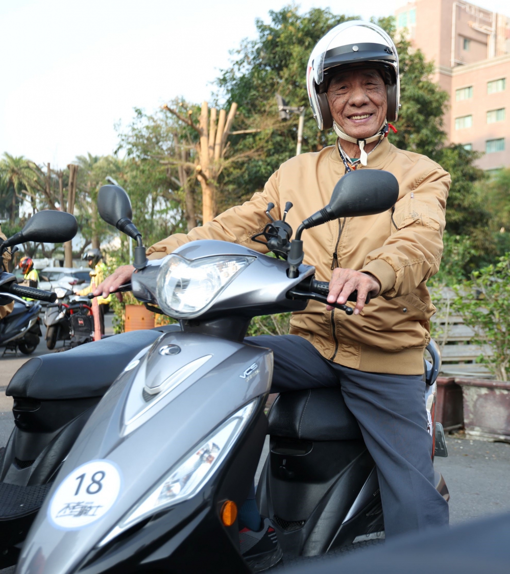 最高齡的84歲詹昭火阿公,由女兒報名,住宜蘭的他,騎車最遠才到花蓮、台東,,未曾騎到台灣西半部,很開心終於能圓夢。
