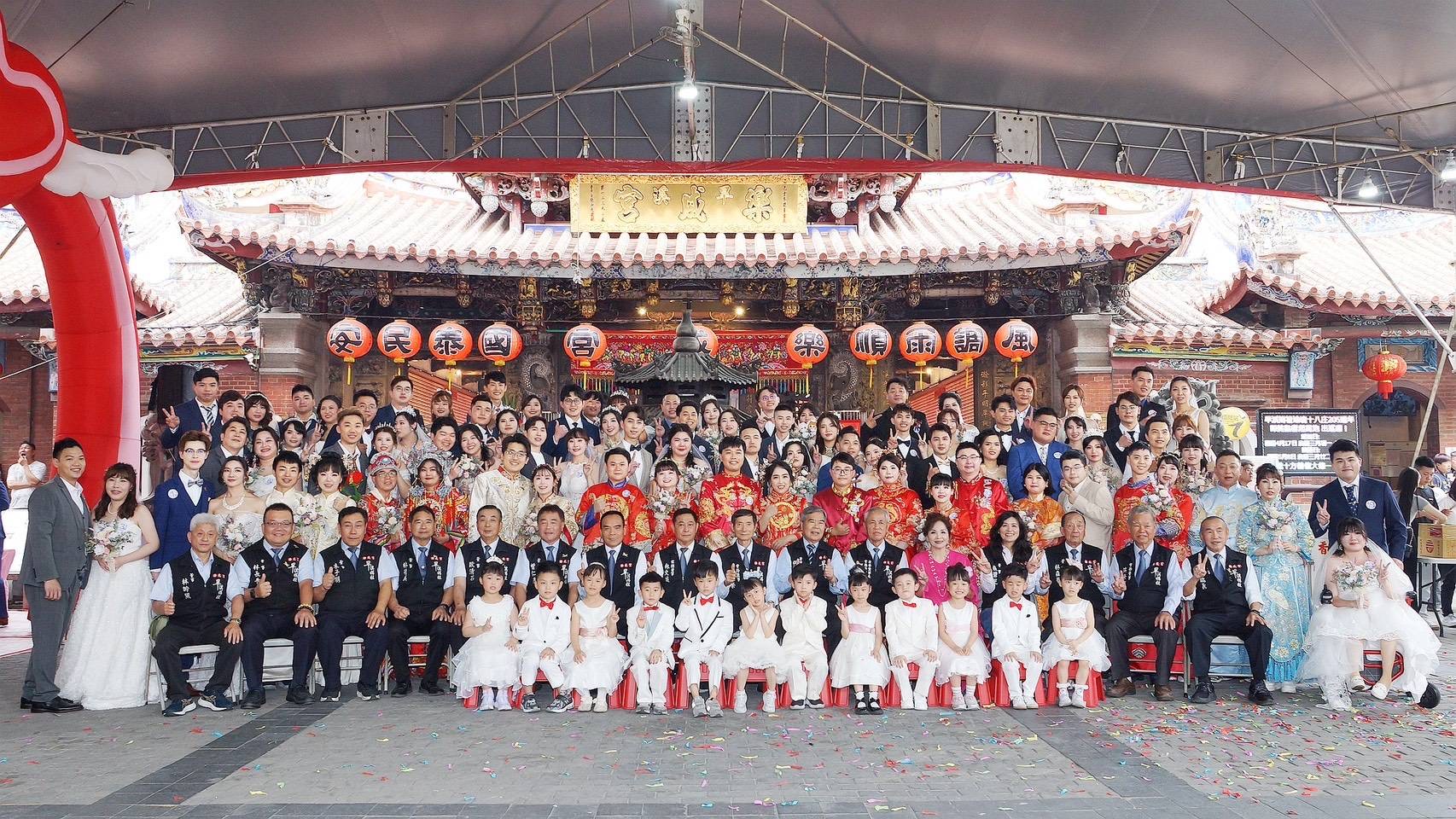 圖:樂成宮第九屆集團結婚現場,88對新人在媽祖見證下完成婚禮。