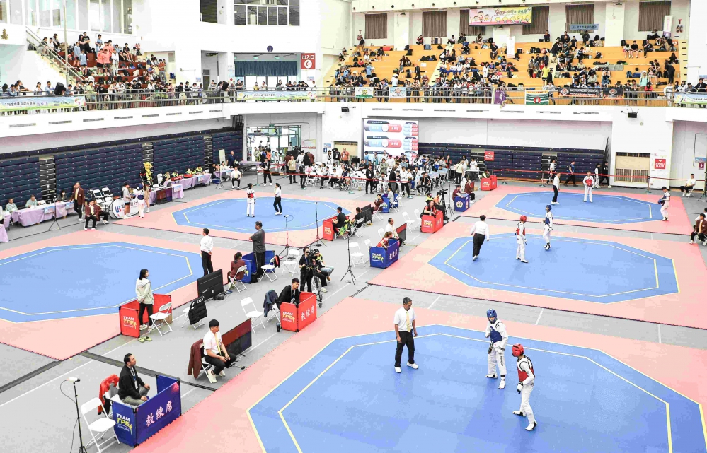今天賽事中各縣市選手全力以赴,攻守轉換迅速,展現跆拳道對打的爆發力與競技張力,考驗選手反應、戰術判斷與技術運用能力。
