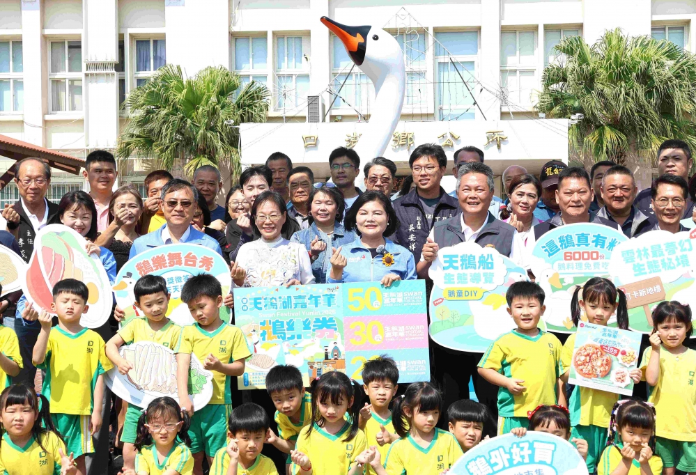 縣長張麗善表示,天鵝湖嘉年華是今年兒童節連假重點活動之一,將於4月3日至12日在有小日月潭美稱的口湖鄉椬梧滯洪池盛大登場,本次最具亮點的8米高巨型天鵝裝置,結合湖面水景,將成為全台最具話題的打卡新地標。