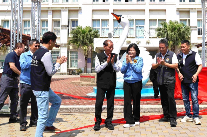 今天口湖鄉公所廣場的3米天鵝裝置藝術提前曝光,為活動暖身,象徵活動正式進入倒數階段,邀請鄉親及遊客利用兒童節連假,帶著小朋友來參加天鵝湖嘉年華。