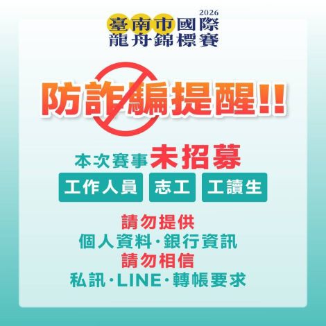 南市體育局陳良乾局長表示,今年的龍舟賽除了有緊張刺激的競賽之外,體育局也在臺南運河周邊規劃多元的活動,包含臺南在地美食、農特產品及文創市集等攤位展售,以及文化展演與親子體適能闖關等體驗活動,打造結合運動、文化與觀光的端午嘉年華。歡迎大家齊聚臺南,一起享受划龍舟的樂趣!本賽事相關報名資訊可至2026臺南市國際龍舟錦標賽官方網站查詢(https://dragonboat.tainan.gov.tw/)。