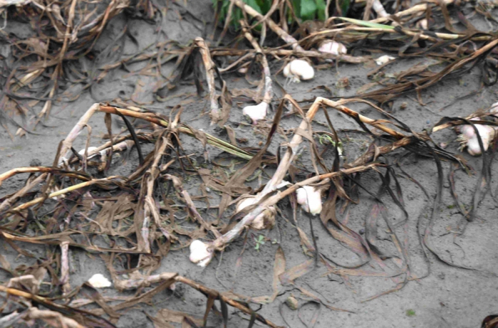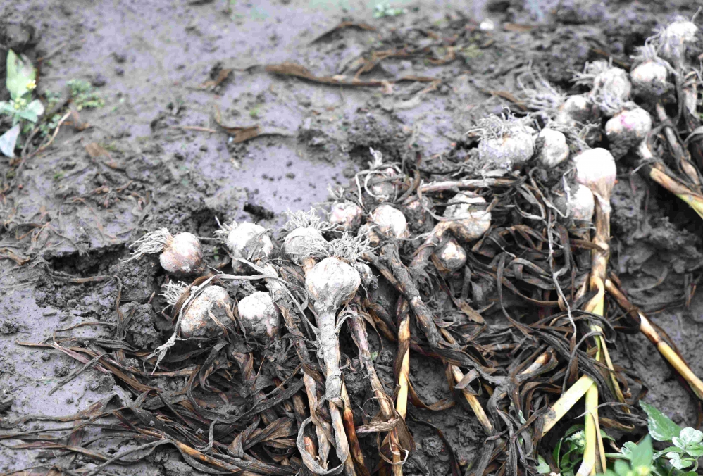 【記者陳信利/雲林報導】雲林縣大蒜產區受4月清明連日豪雨影響,多處蒜田泡水,出現蒜膜腐爛、蒜頭開瓣等情形,影響農民收益。