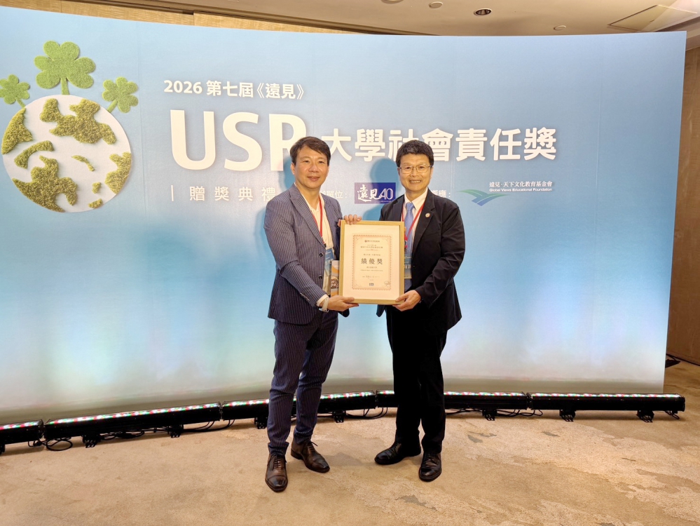 【記者張文一嘉義報導】2026年第七屆《遠見》USR大學社會責任獎於4月9日舉行頒獎典禮,嘉義大學今年首度參賽,即憑藉深厚的在地實踐基礎與跨域整合能量,自眾多優秀團隊中脫穎而出,榮獲「生態共好組」績優獎,展現嘉大推動大學社會責任的卓越成果。