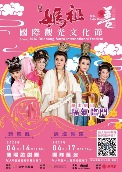 (特派員顏欽賢/臺中報導)一年一度的大甲鎮瀾宮媽祖遶境進香即將展開,台中市政府文化局辦理「2026台中媽祖國際觀光文化節」,並配合大甲媽祖起駕時程規劃系列藝文活動。其中,4月14日晚間7點將在大甲區蔣公路與育德路口推出「起駕戲」,邀請蘭陽戲劇團演出歌仔戲《福氣臨門》,為即將登場的遶境盛會揭開序幕。