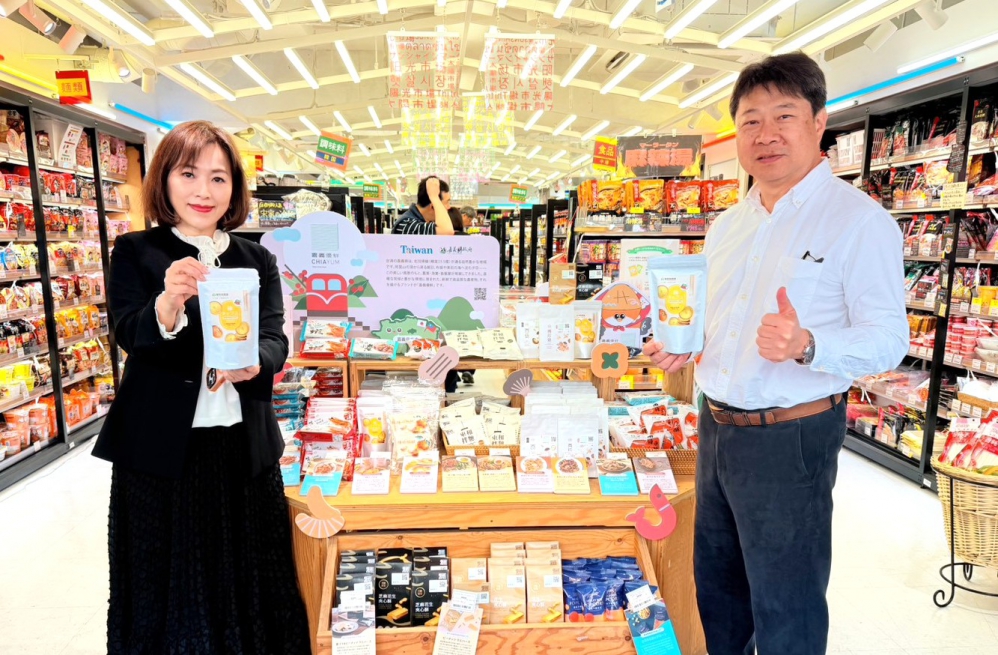 現場共展售13項精選商品,呈現嘉義縣農產從原料供應轉型為加工品牌的成果。為符合日本消費習慣,產品在包裝規格與口味選擇上也進行優化,以更精準對接當地市場需求。