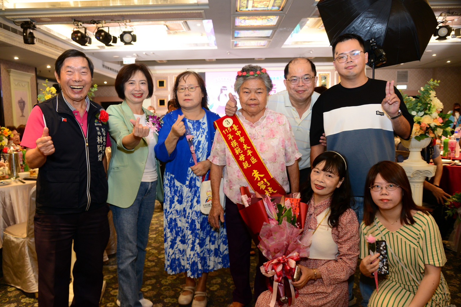 本次表揚活動,太平區公所特別設宴款待模範母親,安排餐敘與歡唱活動,讓所有與會者共度溫馨難忘的節日,同時也預祝全天下母親「母親節快樂」,家庭幸福美滿。