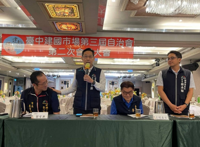 (特派員陳明/臺中報導)中市具代表性的傳統食材寶庫建國市場,於昨(13)日召開第三屆第二次會員大會,現場匯集數百位攤商與各界貴賓。台中市政府經濟發展局局長張峯源代表市長盧秀燕出席表示,肯定自治會在蔡官典會長帶領下展現高度凝聚力與穩健經營成果,並特別感謝攤商於今年3月3日氣爆事件後展現韌性,市府也將持續投入資源,守護全台最大的公有市場。