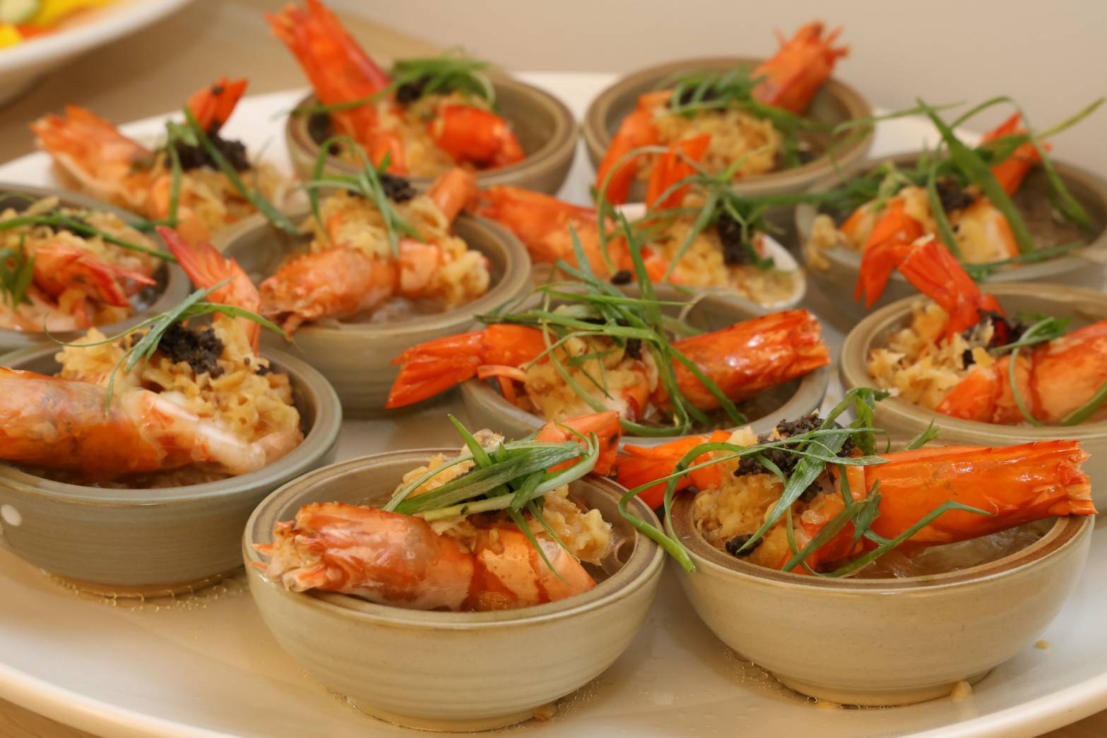賀采宴會廳以中式料理為基底,巧妙融入西式元素,推出多道特色佳餚,包括結合松露香氣的蝦料理,以及經醃製、酥炸後外酥內嫩的排骨料理,展現層次風味;另有鮮美石斑魚與干貝燉雞湯等經典菜色,菜單一推出即吸引許多民眾詢問與預訂。