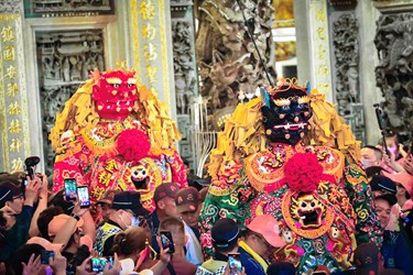 今晚鎮瀾宮內外及周邊湧入大量信眾虔誠參拜,廟埕前還有贊香團、鑼鼓隊、舞龍舞獅等傳統表演,以及鎮瀾宮福德彌勒團、彌勒團、太子團、神童團、莊儀團等恭送儀式,熱鬧非凡。起駕吉時一到,威震四方的起馬炮點響3聲,隨後由鎮瀾宮哨角隊率先開路,盧市長與大甲鎮瀾宮董事長顏清標、副董事長鄭銘坤等人共同扶轎,恭送媽祖啟程,祈願遶境平安圓滿。