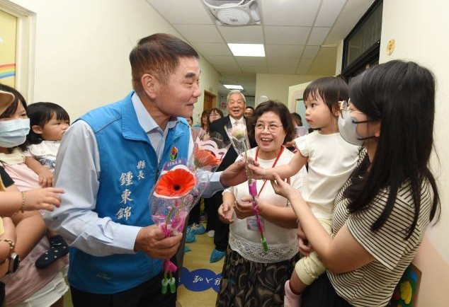 縣長鍾東錦頒狀感謝李綜合醫院院長李順安及熱心單位後,偕同各界來賓轉往公民街3號為托育資源中心主持揭牌典禮,隨後由社會處長張國棟與協會理事長王素美陪同,參觀資源中心內部環境、設施及課程規畫等,許多家長抱著幼兒獻花感謝鍾東錦對托嬰、托育及家長喘息的重視。