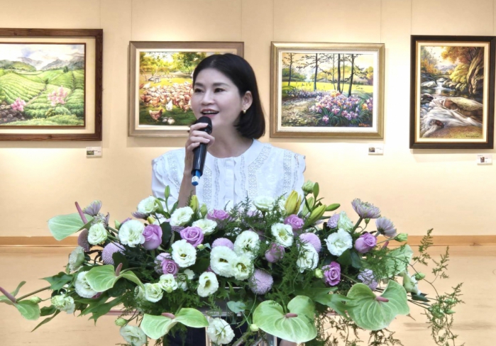 陳副縣長說,高老師精通水彩、國畫及油畫,擅長將東方墨韻融入西方媒材。她曾旅居美加10多年,作品風格明亮、重視氣韻情感,榮獲第16屆雲林文化藝術獎「貢獻獎」等肯定。