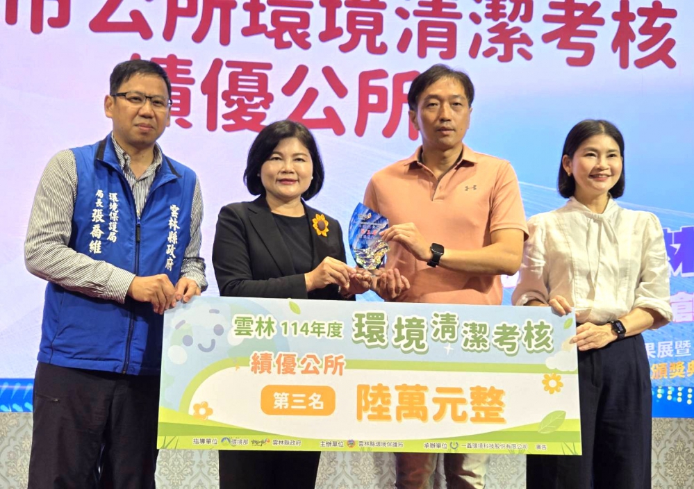 【記者陳信利/雲林報導】雲林縣環境保護局今天(20日)於三好國際酒店辦理「永續雲林 榮耀共創-環境治理成果展暨永續典範頒獎典禮」,表揚114年度7大類共32組環境治理評比績優單位及社團志工,展現從基層到民間攜手合作治理成效!
