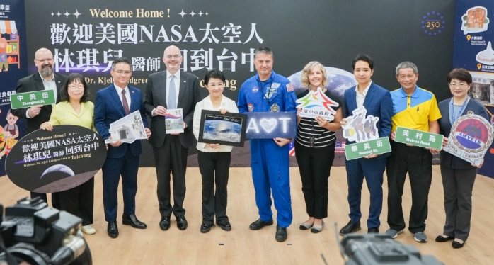 (特派員顏欽賢/臺中報導)為深化城市國際交流,台中今(23)日歡迎美國在台協會邀請的美國太空總署(NASA)首位台灣出生太空人林琪兒(Kjell Lindgren)醫生偕夫人走訪。台中市長盧秀燕表示,林醫師童年曾在台中生活,是台中的家人;此次來訪不僅見證台美長期文化交流,也象徵台中持續走向國際、讓世界看見台灣。