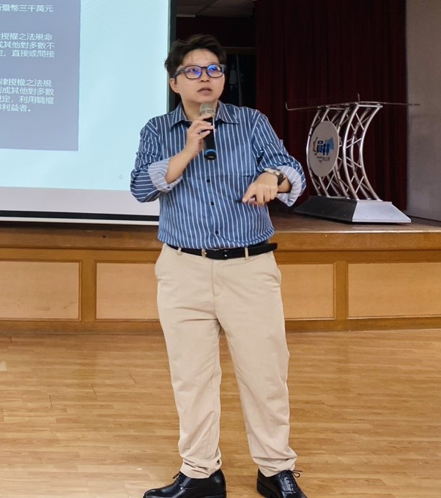 賴致富代市長說,主講的黃鈺雯檢察官也在東海大學法律系擔任講師,擁有深厚學術涵養和豐富實務經驗,講座聚焦在「反賄選」,她深入淺出解析「圖利與便民」、「利益衝突迴避法」和「揭弊者保護法」等法律議題。