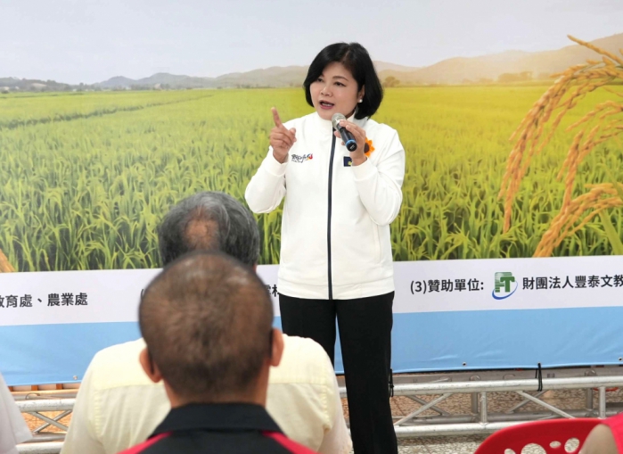 她感謝豐泰文教基金會長期投入資源支持有機耕作推展,自112學年度由5校試辦起,逐步擴展至全縣176所學校,種植面積約30公頃,穩定供應每周一餐有機米,讓學童能在日常飲食中享用安全、優質的在地農產品。