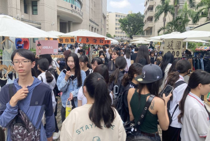 文創市集位在鵬圖人文大樓前,聚集多個特色攤位,包含手作工藝、創意小物、設計小品及服飾配件等,深受同學喜愛,不僅讓學生感受校園多元活力與創意氛圍,也培養美學涵養與生活品味。