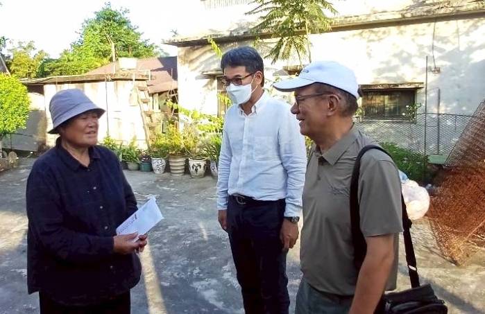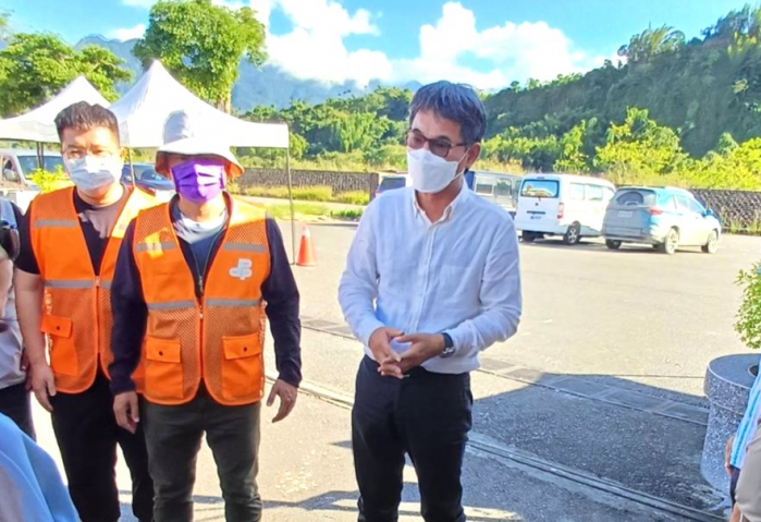 立委劉建國、民進黨花蓮縣黨部主委嚴献宗及善心企業家,今天抵達花蓮瑞穗殯儀館,發給每位罹難者家屬5萬元慰問金,並前往獨居年長受災戶慰問。