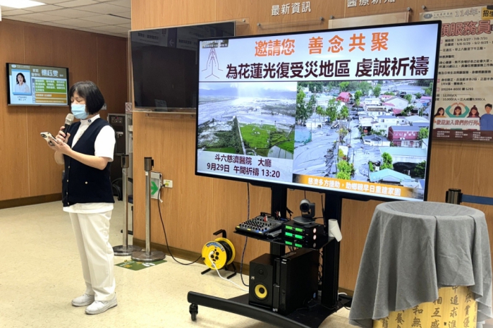 【記者陳信利/雲林報導】花蓮馬太鞍溪堰塞湖溢流重創光復鄉,斗六慈濟醫院於院內舉辦「募心募愛祈福會」,院長簡瑞騰上周率領護理長與同仁親赴災區投入賑災行動,協助清掃環境及醫療關懷,返院後分享親身見聞,期盼喚起院內外民眾共同關懷,匯聚愛的力量,協助災區早日復原!