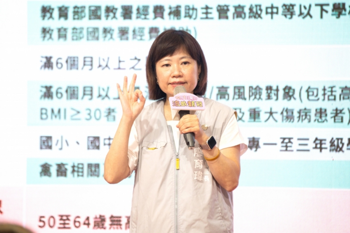 廖局長說,第一階段自10月1日起,流感疫苗接種對象包括:1、65歲以上長者;2、55-64歲原住民;3、安養、長期照顧(服務)等機構受照顧者及其所屬工作人員;4、孕婦;5、醫事及衛生防疫相關人員;6、幼兒園托育人員、托育機構專業人員及居家托育人員(保母)。