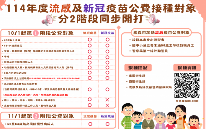 ◆有關流感及新冠疫苗合約醫療院所、社區接種站等相關訊息可至衛生局官網/主題專區/疫苗專區:https://reurl.cc/MNM1nv查詢,也歡迎民眾電洽衛生局詢問:05-2338066。(圖/市政府提供)