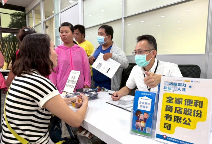 面試現場不斷傳來佳音,55歲張先生順利錄取全家便利商店門市人員工作,他開心高喊:「歡迎光臨!」。