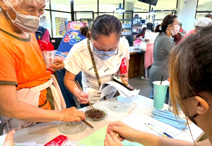 活動中安排的「手眼協調過五關」遊戲吸引大批民眾排隊挑戰,包括積木疊疊樂、豆趣夾夾樂、穿針引紅線、左右速換趣與拼圖計時賽。