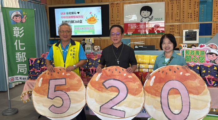 郵局說,這次捐贈742盒由彰化縣身心障礙者庇護工場「肯納兒烘焙坊」製作的中秋月餅禮盒,除支持弱勢群體就業機會,還給社福團體感受中秋佳節的溫暖和關愛。