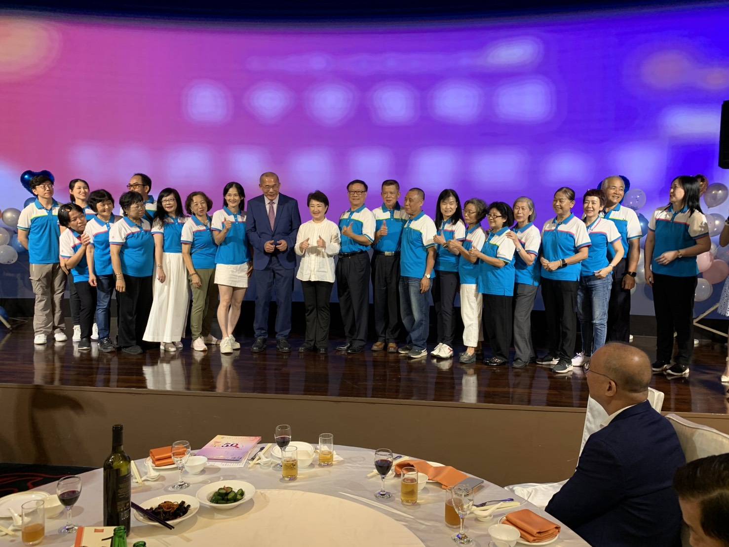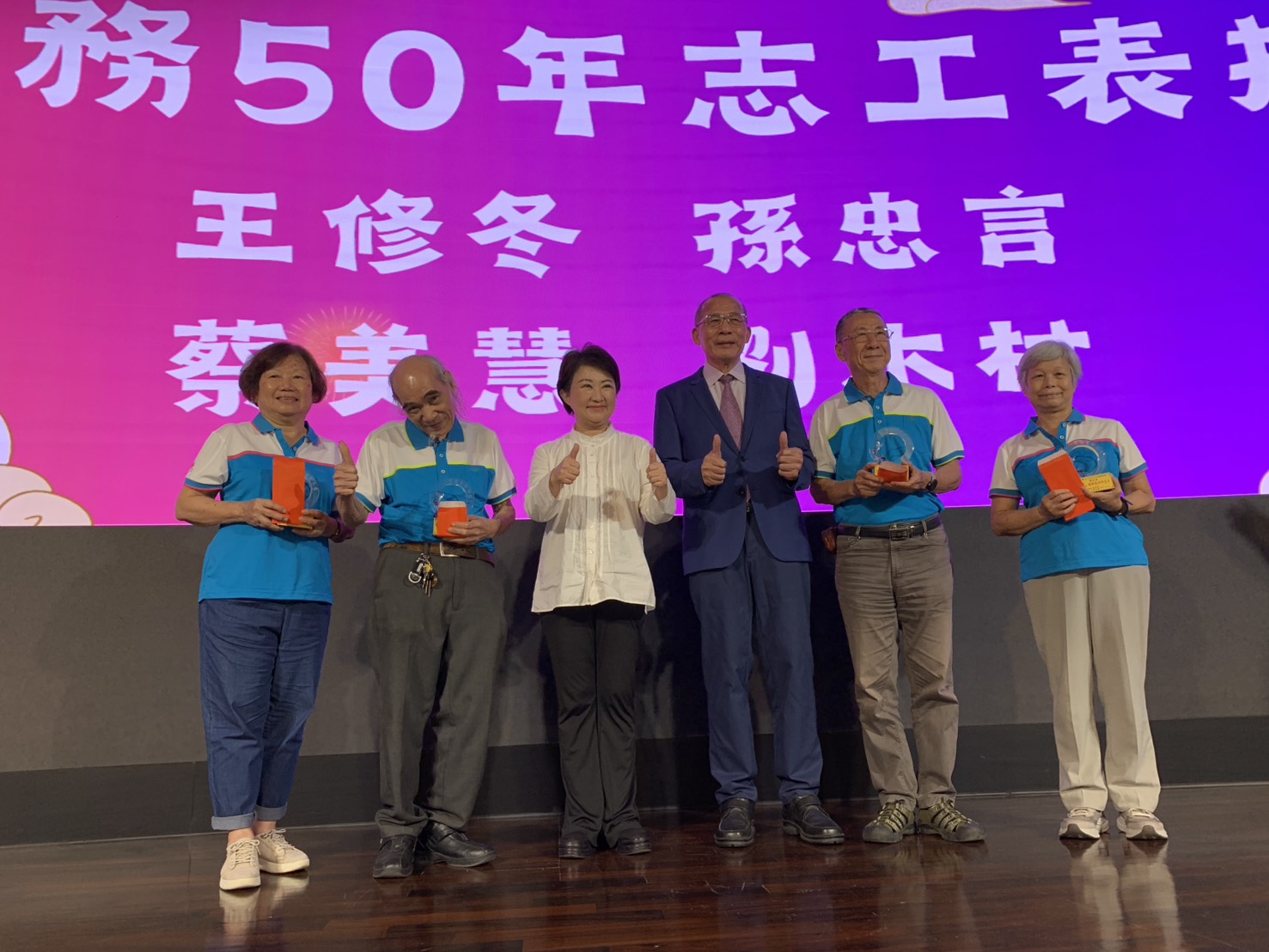 今天出席慶祝協會50周年大會與會有台中市盧秀燕市長、廖偉翔立委、台中市衞生局曾梓展局局、台中市社會局主任秘書、麗明營造吳春山董事長……等及立委代表和貴賓皆到場祝賀。台中市盧秀燕市長特地頒發獎牌予服務50周年志工,感謝他們無私奉獻,風雨無阻堅守崗位至今,協會也頒發紅包聊表心意感謝。