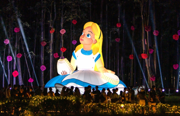 現場不僅有亞洲知名幻術師與重量級歌手輪番演出,更有9米高愛麗絲造型立體裝置,以及北香湖上4.5米高旋轉月亮裝置點綴夜空,將整個場景打造得夢幻迷人、充滿奇幻魅力!