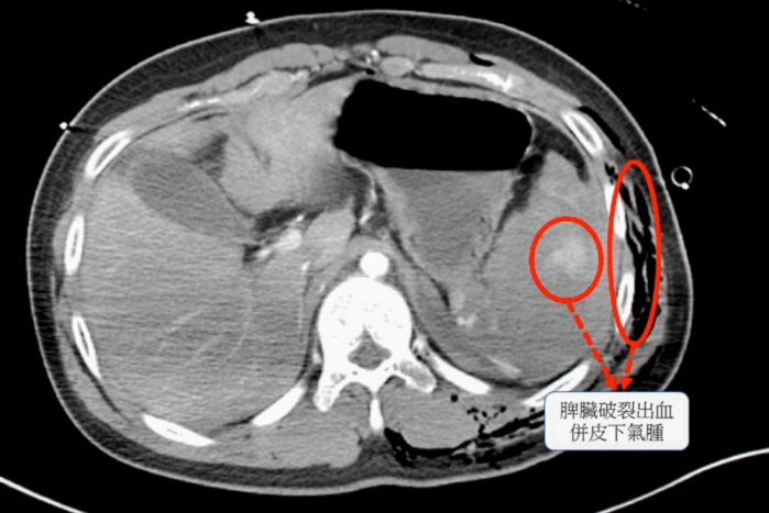 彰基指出,經電腦斷層檢查,確認少年脾臟完全碎裂,為體內大出血主因,同時合併胸腔積血、積氣及多處骨折與血管撕裂傷,面對如此複雜傷勢,外科團隊首先進行緊急手術,切除破裂的脾臟,以控制出血,骨科與整形外科團隊則接力進行骨折固定和血管修補,穩定少年生命跡象。