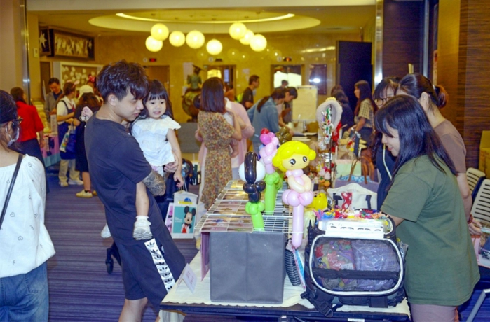 市集攤位準備圍兜手作、嬰幼兒清潔用品和兒童繪本等實用商品,媽媽們表示,貼近日常需要。