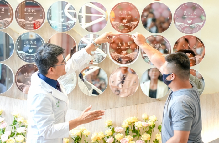 揭牌典禮中,院方特別播放紀錄影片,帶領與會者回顧這段動人的大愛歷程,並邀請家屬上台,將刻有捐贈者姓名的紀念鏡莊重掛於紀念牆上,象徵永恆追思與生命傳承。