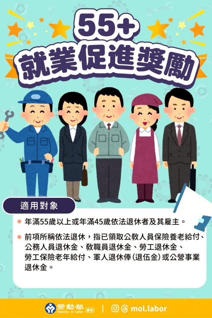 勞動部勞動力發展署雲嘉南分署虎尾就業中心主任廖家偉指出,鼓勵中高齡朋友勇敢踏出來,只要願意踏出第一步,就有重新出發的機會,勞動部亦將提供多項就業支持措施,包括「五五就業促進獎勵」、「職務再設計」等。