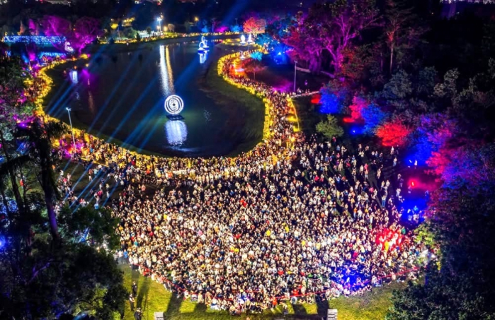 中秋連假3天期間,「光織影舞」即吸引超過32萬人次湧入北香湖,現場人潮絡繹不絕,網路熱度持續攀升,展現活動強大吸引力。市府預期,雙十連假將迎來下一波觀展高峰!