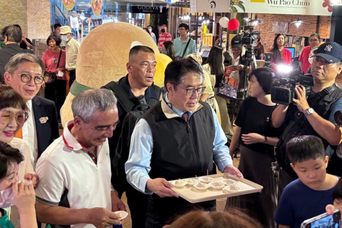 【記者蔡俊賢/台南報導】繼今年7月「今夏好芒~快閃登場」在板橋大遠百創下亮眼成績後,臺南市政府再次北上推廣農特產。市長黃偉哲今(10)日率領農業局及臺南在地商家,共同於Mega City板橋大遠百B1綠洲區舉辦「秋收臺南味 豐饒好時節」國慶連假三日快閃展售活動。現場除特別展示臺南吉祥物「巷仔貓」(巷仔Niau)迎賓外,還有市場處吉祥物「菜奇鴨」登場炒熱氣氛,吸引不少民眾駐足拍照打卡。