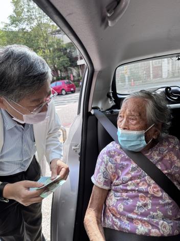 吳老太太精神矍鑠,雖已高齡仍相當重視身體健康。她在78歲的兒子吳福安先生的陪同下,親自前往衛生所接種疫苗,吳先生接種後表示:「打疫苗保護自己,也保護家人,身體才會勇健長壽。」吳老太太的接種紀錄顯示,每年皆按時接種疫苗。她的正向積極態度也讓現場民眾深受感動,成為最佳的疫苗施打代言人。