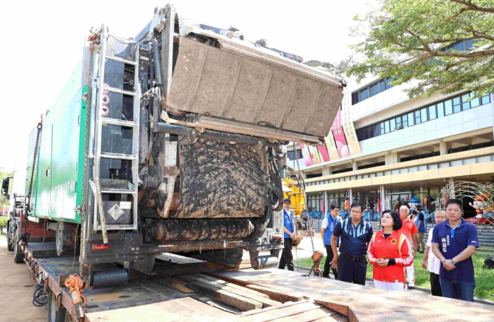 因考量此次災情有大量積泥,環保局特別調派於111年採購全國唯一大型破碎機前往花蓮,處理破碎大型廢棄家具、漂流木、也調配1部滾筒篩,將泥砂篩分出來,加速花蓮災後復原工作。