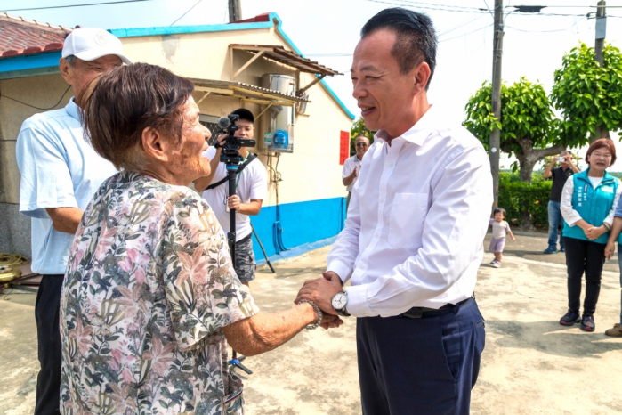 今天包括布袋鎮長蔡瑋傑、義竹鄉長黃政傑、縣議員翁聰賢等各級民代到場,兩地公所也分別送上禮品敬賀。(圖/縣政府提供)