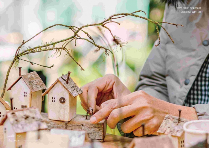 活動內容除了自然導覽,同時推出兩款結合自然與創意的「氣象與森居的共感計畫」體驗活動,讓參加遊客透過雙手與感官,再次連結山林的靜謐與溫度。第一款天氣瓶實驗:靈感源自阿里山的雲霧與氣候變化,遊客可製作屬於自己的天氣瓶,觀察瓶內結晶隨氣溫改變而產生的細膩變化,如同將阿里山的霧氣與時間收納於手中。第二款微縮小木屋:以自然素材創作屬於自己的小木屋模型,透過木質仿舊與微構築的手作過程,打造心中理想的森林居所,收藏一份專屬阿里山冬季的山林記憶。