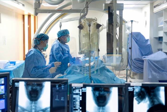 神外科醫師郭明錡指出,中風搶救關鍵是﹁時間與判斷﹂,據統計,約27%病人因送醫延遲而錯過黃金期,反之,及時送醫者在AI輔助判讀與團隊協同處理下,可迅速決策,進行取栓手術。